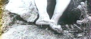 Plan 82-35 [1]: 42' 23" : Théophane le Grec assis "en majesté", éclatant de lumière, les pieds nus jusqu'aux genoux plongés dans une fourmilière. Les fourmis courent sur ses pieds dans tous les sens. (Cf. Photogramme – Fourmis .)