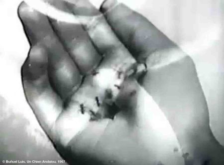 - ↑ G. Durand écrit : (…) "Une des primitives manifestations de l'animalisation est le "fourmillement" "image fugitive mais première." (G. Bachelard, La terre et les rêveries au repos, p. 56, 60.) "Ne retenons par l'étymologie française du mot ni le travail des fourmis qui apparente l'image de ses dernières à celle du serpent fouisseur. Ne conservons du fourmillement que le schéma de l'agitation, du grouillement." op. cit., p, 76. D'un angle psychanalytique, F. Cesarman voit les fourmis chez Buñuel d'une manière différente. Dans la 2ème partie du Chien Andalou, lorsque la femme s'approche du jeune homme, elle voit que la main (du jeune homme) est pleine de fourmis qui sortent d'un trou noir : "(...) les fourmis dans la main du jeune homme sont les représentations de fantasme de masturbation et sa punition." op. cit., p. 69 ; dans Simon du désert, Simon prononce un sermon du haut de sa colonne, pendant ce temps, la mère de Simon pose sa main sur une fourmilière et la main se couvre de fourmis : (...) "La main couverte de fourmis est la sexualité de la mère." p. 186 ;