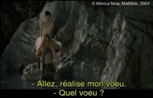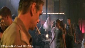 La seconde fois que De Petris dit à Mathilde d’arrêter (ce petit jeu), c’est quand ils étaient dans la cabane, et que Mathilde embrasse De Petris à l’oreille. Et enfin, la troisième fois, c’est lors du mariage slave, au plan 1145. Mathilde dansait avec un groupe de personne habillé avec des costumes folkloriques, autour d’un feu imaginaire. C’est d’ailleurs, une autre caractéristique du film, des morceaux de réalité qui apparaissent pour Mathilde et Misho qui ne sont pas visibles par les autres protagonistes, hormis, durant le mariage, quand De Petris sera lui aussi habillé du costume folklorique et de la couronne, témoignage de l’accomplissement d’une union, démontré visuellement à l’écran par le versement de l’eau sur le feu par la mère (morte) de Mathilde.