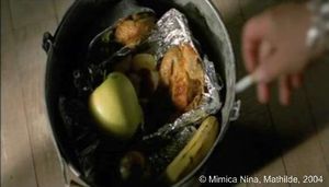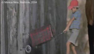 Plusieurs objets dans le film vont subir un jeu de dilatation ou d’agrandissement. Nous avons abordé cet aspect dans l’analyse du film Nostalghia d’Andreï Tarkovki. Dans Mathilde cet aspect va acquérir aussi une grande importance. Tout d’abord, nous l’avons vu, il y a le jeu du bateau en feu, et le bateau en jouet ; ensuite, il y a la tenue de Mathilde en ballerine et la statuette de la ballerine, que le Docteur retrouvera la première fois dans les ruines du village, au plan 1067, et la seconde fois, quand Mathilde va retrouver sa liberté, au plan 1853. Enfin, nous revenons à l’épisode du coffre, et nous nous posons la question de savoir, aux plans 174 – 195, qu’est-ce qu’il y avait dans les conteneurs dans le port de Split, quand Mathilde avait lancé son défi ?