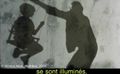 Séquence Séquence 132 [Aa2 - 7] - Plan 1676 : 1h 29' 21" : De Petris est abattu moralement « Quel plan déroutant ! Si cruel. Si simple. Si parfait.» A peine il termine sa phrase, le canon d’une mitrailleuse est pointé sur sa tempe. Mathilde demande à Misho d’enlever l’arme. « Il est pas mort, mon papa. C’est le Petit Roi ! » De Petris est pris au dépourvu : « Tu es grand, maintenant. Le Petit Roi n’existe pas.