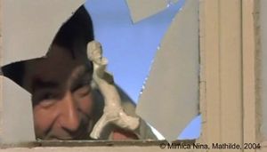 Photogramme 76 : Séquence 143 [Ca - 26] - Plan 1853 : 1h 34' 48": Une infirmière se précipite près du Docteur : « Qu’est-ce qui vous a pris ? Mathilde est partie. Elle a filé. Elle est sortie du coma, cette nuit. Regardez ! Quelqu’un a dû l’aider de l’extérieur. Elle n’a pas pu casser la fenêtre seule. » Le Docteur traîne jusqu’à la fenêtre en riant, il découvre la petite ballerine, il se lève vers la vitre cassée : « Le Plan Parfait…