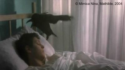 Photogramme 68 : Séquence 111 [Ca - 20] - Plan 1493 : 1h 21' 18": Un corbeau malveillant se dresse à côté de la tête de Mathilde. Elle rêve…