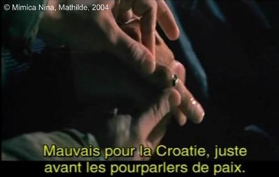 De Petris insiste auprés de Mathilde : « Dehors, il y a deux armées qui rêvent de tuer le père de Misho. » [Séquence 122 : Aa2 -3] « J’ai prévenu les Croates. L’ONU devra arrêter Paradic, pas l’abattre. » [Séquence 124 : Aa2 -4]