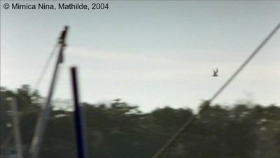 Photogramme 77 : Séquence 144 [Postlogue 1] - Plan 1857 : 1h 35' 03": Sur un ciel bleu et limpide, une mouette signe la fin du film : Mathilde. En voix off, Mahtilde dit : « Vous voyez. Ca marche ! »