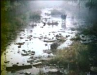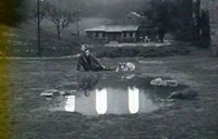 Plan83 : 1h 15' 55" : Court plan en noir et blanc. Le Stalker est allongé sur le côté, il est entouré d'eau. Le chien noir apparaît de nouveau au fond de l'image. Il s'approche du Stalker et docilement vient se coucher contre lui. Quelques plans plus loin, nous quittons les vicissitudes des deux hommes pour entrer dans le monde du rêve.