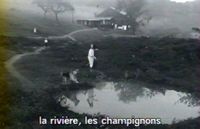 '''<span id="ancre_50">Plan</span> 50''' : ''50' 56"'' : Le Poète entre dans une grande salle, accompagné de la | '''<span id="ancre_50">Plan</span> 50''' : ''50' 56"'' : Le Poète entre dans une grande salle, accompagné de la chienne du "Fou", Zoé. Le toit de la salle est ajouré par endroits. Il pleut intensément. L'eau tombe abondamment dans la demeure-grenier. Long travelling de droite à gauche. Arrêt de l'image sur une énorme flaque d'eau, Zoé se couche au milieu de la flaque. (Cf. '''Photogramme – Chien 4'''.) | ||