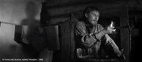 Comme pour le cheval, il faudrait consacrer à la figure du chien un grand chapitre, ce qui sort du cadre de notre étude. [1] La première fonction mythique du chien universellement attestée, est celle de psychopompe [2] : (…) " Il n'est sans doute pas une mythologie qui n'ait associé le chien, Anubis, T'ien-k'uan, Cerbère, Xolotl, Garm, etc. à la mort, aux enfers, au monde du dessous, aux empires invisibles qui régissent les divinités chtoniennes ou séléniques. Le symbole très complexe du chien est donc, à première vue liée à la trilogie des éléments, terre - eau - lune dont on connaît la signification occulte, femelle, tout à la fois végétative, sexuelle, divinatoire, fondamentale, tout aussi bien pour le concept d'inconscient que pour celui de subconscient. [3] (…) " [4] La symbolique du chien rejoint donc celle de cheval. Mais il faut observer, que c'est à la fin du Ier épisode, après la mort d'Efim, que le cheval gesticulait sur l'herbe, alors qu'à la fin de cette partie dans le IIIème épisode, c'est le chien qui est mort, et Kyril qui s'en va dans le monde inconnu. C'est encore un cas d'inversion. Notons aussi que les deux animaux sont noirs, et solitaires. Cette solitude pose un problème car, au VIIème épisode, dans la même cour du monastère, il y avait une horde de chiens, pourquoi sont-ils absents ici ? Nous ne les entendons même pas, pourquoi ? Ce fait ne cherche t-il pas à nous indiquer une signification particulière ? Une direction particulière ? Il s'agit peut-être d'une isolation de la figure, comme pour le cheval, afin de faire subir à l'image la déviation symbolique que le cinéaste veut suggérer.