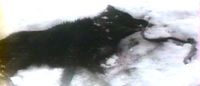 La figure du chien devient une figure centrale, dans l'acceptation de ses différents sens, et nous sommes toujours dans le cadre de la figure de l'inversion. C'est d'abord par rapport à Kyril, le chien comme figure de fidélité et d'attachement ; et par rapport à l'évêque, figure de vagabondage et d'instabilité : " va-t-en chien". Cette dernière citation, et le fait que Kyril tombe deux fois dans la neige, sans oublier qu'il jette son bâton, c'est-à-dire, son point d'appui, annoncent ses mésaventures, que nous ne découvrirons que dans le VIIème épisode : il racontera qu'il a été suivi par des … loups, et afin de s'en échapper, il passera toute une nuit dans un lac froid. Il tombera malade et il aura la voix enrouée. Enfin, en frappant le chien et en le tuant, c'est la fidélité qu'il frappe et qu'il tue. (Cf. Photogramme – Chien 1.)