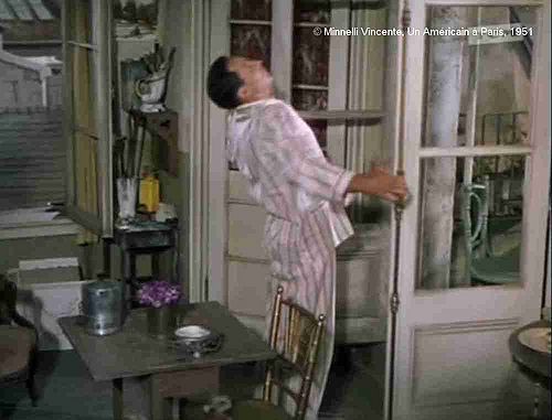 [[Fichier: Chambre_Minnellli_AmericainaParis_1000p.jpg| | [[Fichier: Chambre_Minnellli_AmericainaParis_1000p.jpg|500px|thumb|right| ''Un Américain à Paris''. Dans une pièce minuscule, dans laquelle on peut à peine se retourner. Jerry Mulligan (Gene Kelly), a aménagé, avec dextérité et débrouillardise, une chambre meublée complète. Grâce à cette séquence, le réalisateur montre l'esprit pragmatique et efficace de Jerry, non dénué de sensibilité, avec le petit pot de violettes.]] | ||