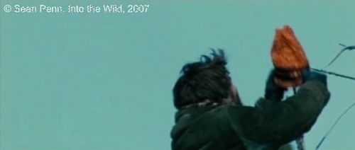 [[Fichier: intothewildp3.jpg| | [[Fichier: intothewildp3.jpg|500px|thumb|right| ''[[Into the Wild]]'', '''plan 60. ''' Christopher marchera dans le grand Nord avec une certaine jubilation, il arrivera à un petit arbre et posera à sa cime un bonnet orange. Nous verrons ultérieurement la valeur de ce [[Into the Wild#ancre_3|bonnet]]. ]] | ||