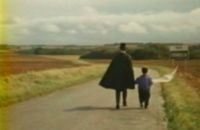 _ Jean : "Eh ! … regarde" ! En contrechamp : l'homme à la cape, de dos, continue son chemin ; à ses côtés, marchant, un nain qui lève la main d'où s'échappe une colombe. (Cf. Photogramme – Cape 5.)