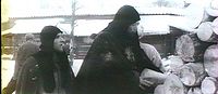 Après un très court moment d'hésitation, Andreï Roublev accepte. Ce dernier rejoint Daniel Tcherny qui range des bûches. Roublev espérait l'emmener avec lui. A cet instant, Kyril est adossé contre le mur de bûches. Dès qu'il s'est aperçu que Roublev voulait emmener Daniel et non pas lui-même, il part vexé et irrité.