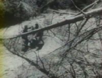 - Plan 79, Thomas et Roublev qui marchent sur un arbre-pont.
