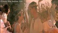 Photogramme 51 : Séquence 90 [Ac - 11] - Plan 1178 : 1h 01' 14": Les apparences changent de nouveau. Nous glissons de nouveau dans le monde imaginaire de Mathilde, mais cette fois-ci, De Petris rejoint son monde slave. Il est habillé aussi dans un costume local, et rejoint la danse. La mère de Mathilde apparaît elle lui dispose d’une couronne autour de la tête et lui dit : « Puisse tous tes rêves devenir réalité, mon enfant.