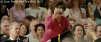 Photogramme 10 : : Séquence 20 [B - 2] - Plan 196. 0h 12' 57" : Mme McCandless, interloquée, se lève, parmi toute la foule assise, et prend une photo de son fils. C’est, hélas, la dernière photo qu’elle aura prise de son fils. Nous verrons bientôt, une relation avec la photographie. Nous distinguons à la droite de sa mère, son père Walt, et à sa gauche, sa soeur Carine.