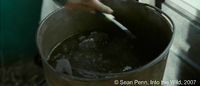Photogramme 5 : Into The Wild, Plan 118. Christopher visite le Bus, il découvre des ustensiles de cuisine, ensuite, un lit, une cheminée. Il sort le matelas, et commence à le frapper avec un bâton.