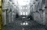 La caméra effectue un zoom arrière lent, pour laisser apercevoir, au fur et à mesure, l'ensemble de la cathédrale en ruine. Des flocons de neige commencent à tomber. (Cf. Photogramme – Maison 3.) Dédicace du film : "A ma mère."