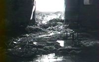 Le premier épisode commence par Maroussia qui regarde des champs verts, et se termine par l'image de l'héroïne qui contemple un fenil en feu rouge. Notons à ce propos le fait significatif au plan précédent : elle asperge son visage de quelques gouttes d'eau devant l'énorme feu. En revanche, dans l'épisode suivant, elle plonge la tête, d'une manière étrange dans une bassine d'eau. L'eau et le feu vont devenir les éléments de liaison entre les épisodes et particulièrement entre les deux premiers, puisque dans le premier épisode, Maroussia attendait son mari, et dans le second elle est avec son mari, qui va lui verser de l'eau sur la tête. Or, dans le premier épisode, l'eau se réduit à quelques gouttes, et le feu est très intense. C'est en fait, toute la "maison" qui brûle, dans son sens psychanalytique, "sa maison", son chez-soi, c'est cela qui brûle. Et au début du second épisode, "Le rêve d'Aliocha", "la maison" est en quelque sorte inondée, "la maison" part littéralement en morceau, des morceaux de plâtres du plafond. (Cf. Photogramme – Maison 1.)