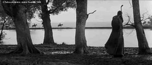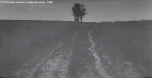 - Plan 23b, le jeune bouleau à la sortie des moines du monastère. Il représente la jeunesse et la fragilité d'Andreï Roublev. En revanche ici ou comme au plan 111, face à la femme nue, l'arbre représente l'âge mûr de Roublev ;