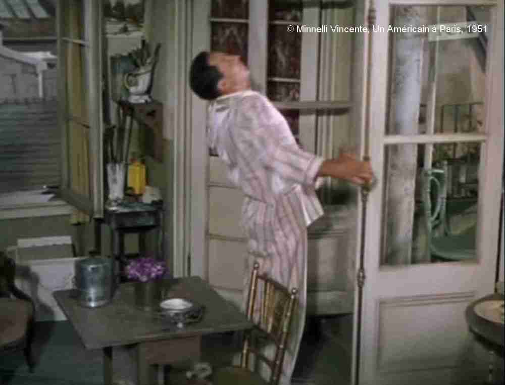 Un Américain à Paris. Dans une pièce minuscule, dans laquelle on peut à peine se retourner. Jerry Mulligan (Gene Kelly), a aménagé, avec dextérité et débrouillardise, une chambre meublée complète. Grâce à cette séquence, le réalisateur montre l'esprit pragmatique et efficace de Jerry.