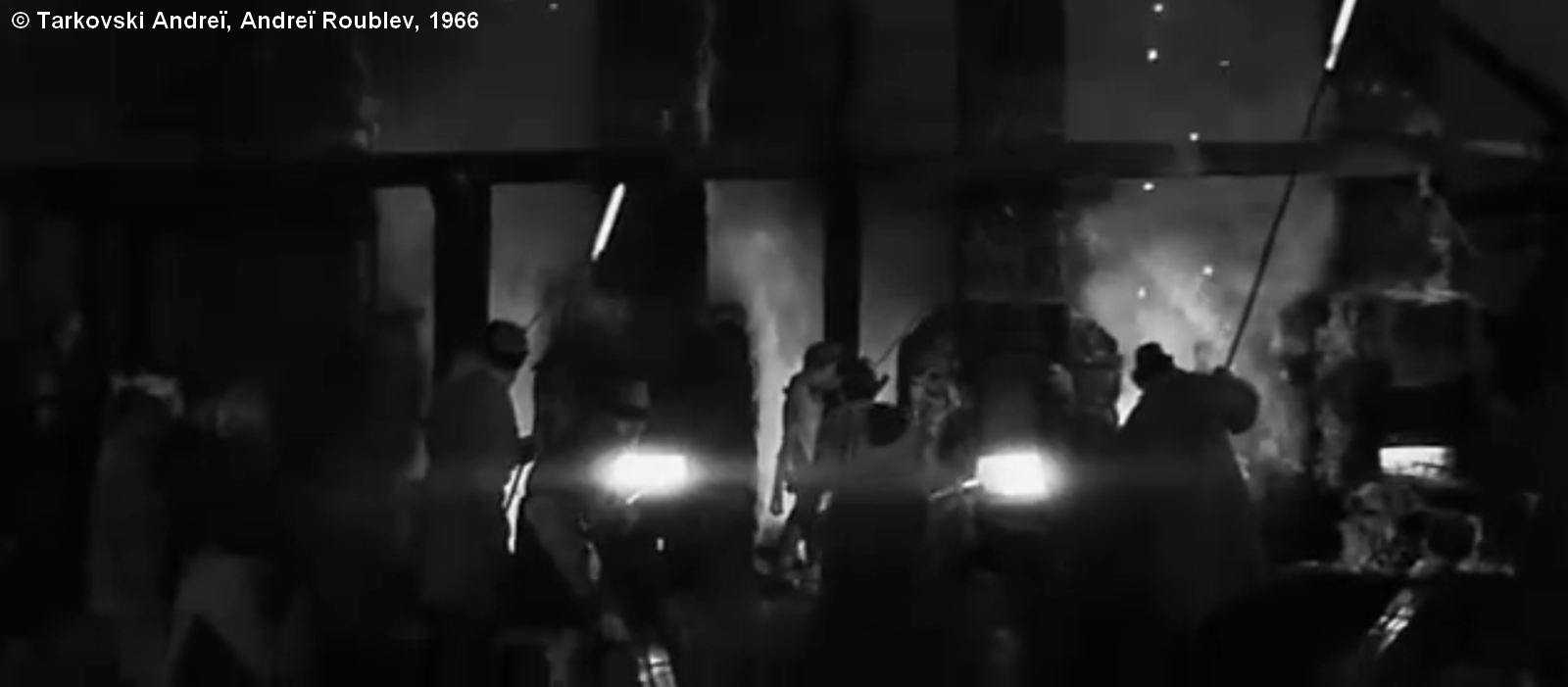 Photogramme - Cloche 1 : Andreï Roublev, Plan 350. La forge qui propose l'image "des yeux de la création."