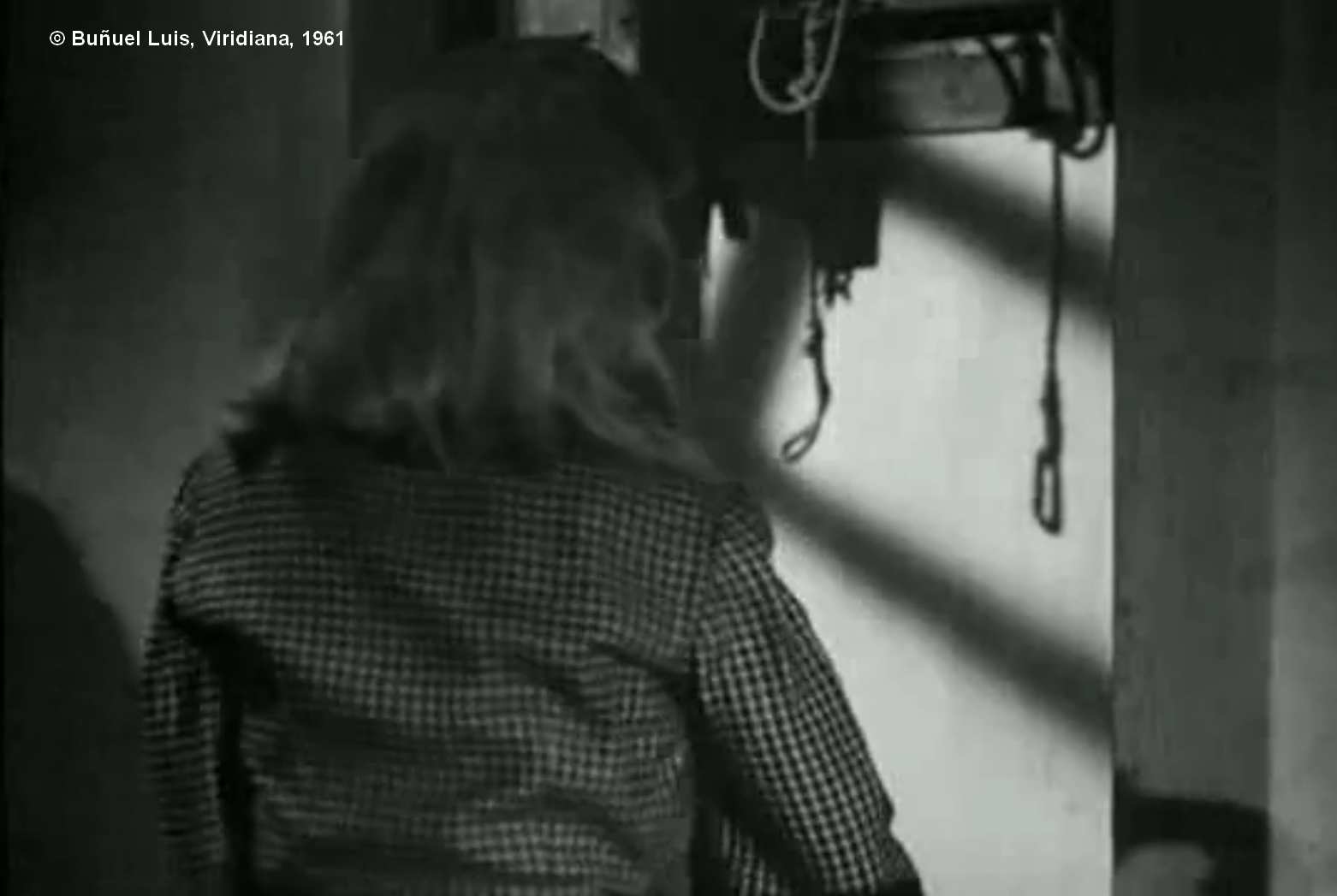 Photogramme - Corde 10 : Viridiana. Dernière image où nous rencontrons l'ombre de la corde d'un pendu sur un mur.