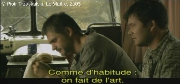 Photogramme 27 : Le Maître, Plan 67b. A&grave cet instant précis, à peine il termine sa phrase, nous entendons le couteau qui tombe, et qui se fiche au sol.