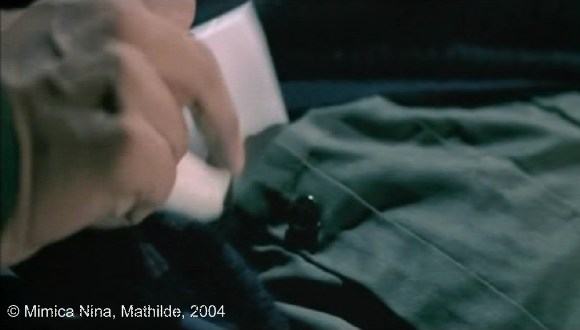 Photogramme 5 : Mathilde, Plan 1. on glisse la photographie dans la pochette humide du colonel.