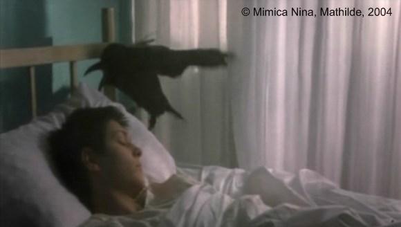 Photogramme 68 : Mathilde, Plan 1475. Un corbeau malveillant se dresse à côté de la tête de Mathilde.