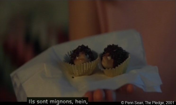 The Pledge de Sean Penn. Photogramme - 52. 1h 40’ 06’’. Chrissy montre à Jerry les bébés hérissons en chocolat.